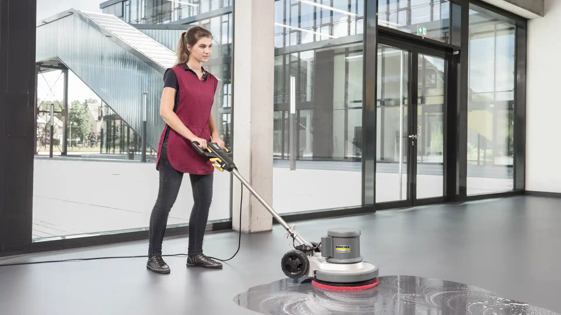 High-traffic zones demand frequent corrective care. A buffer, often referred to in the floor maintainer vs floor polisher category, is ideal for restoring cleanliness and consistency in entryways, corridors, and workspaces where soil buildup is constant.
