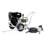 The HD 3.0/27 G Teton pressure washer is lightweight and features a corrosion-resistant aluminum frame with a direct-drive pump. Runs up to 3 GPM and 2,700 PSI.